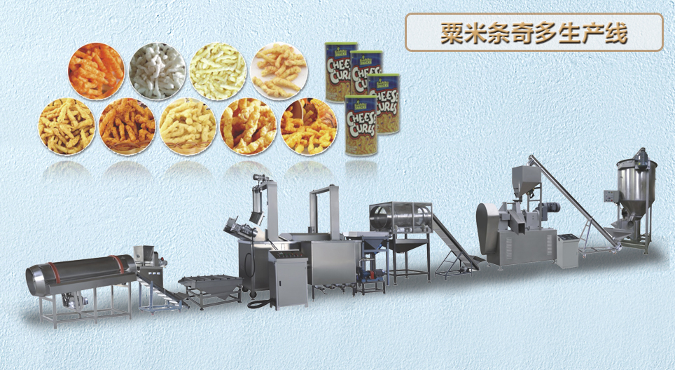 膨化小食品生产线 夹心米果面包片生产线 玉米片谷物生产线 营养米粉生产线 人造米生产线 大豆花生蛋白生产线 粟米条奇多生产线 油炸食品生产线 锅巴沙拉条生产线 燕麦巧克力生产线 妙脆角三角片生产线
